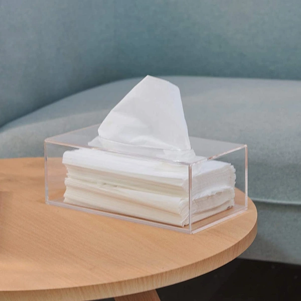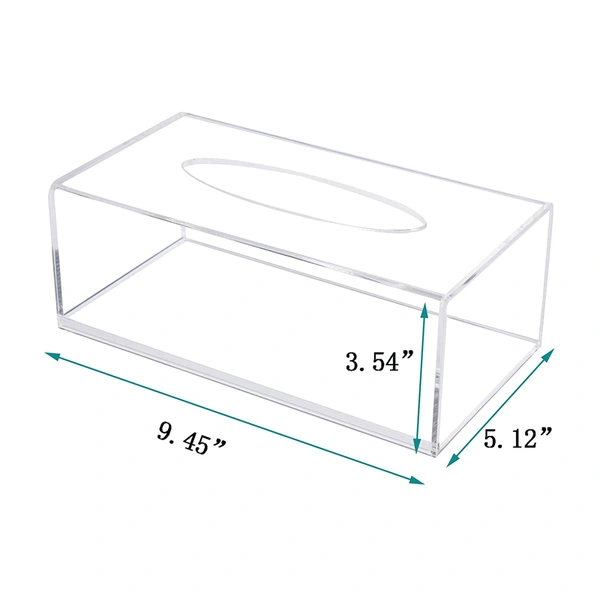 في مربع الأنسجة المصنوعة من الاكريليك واضحة، وهي خفيفة جدا ودائمة. صندوق مناديل الأكريليك الشفاف يبدو أكثر تصميمًا. حجم صندوق المناديل هو 9.45 × 5.12 × 3.54 بوصة ، ويمكن وضعه في السيارات والمطابخ والحمامات والمكاتب والفنادق. يمكن تفكيك الجزء السفلي لسهولة وضع المناشف الورقية.