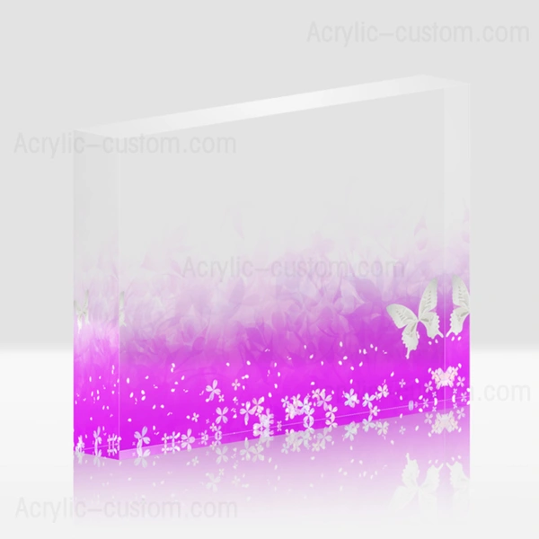 Highlight your favorite photographs of special events or stunning landscapes with a custom acrylic photo block. The transparent, polished acrylic sides and face of your photo block direct light onto your photo, making colors more vibrant and creating a 3-D effect. Because of this, these face-mounted photos are especially striking for portraits.