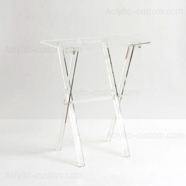7. Der völlig durchsichtige Lucite-Tisch lässt sich leicht zusammenklappen, um Platz zu sparen, da er leicht und stapelbar ist.