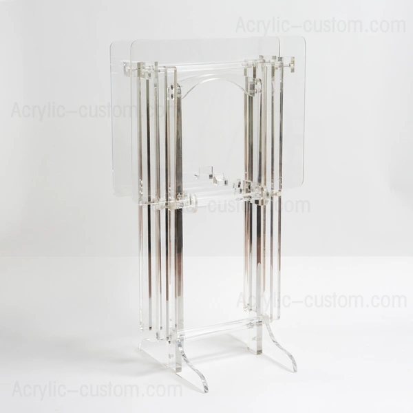 6. Der klappbare TV-Tabletttisch aus klarem Acryl ist robust und langlebig für den täglichen Gebrauch.