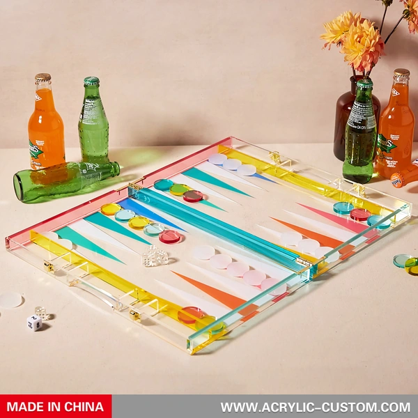 Elegante juego de backgammon acrílico y metacrilato