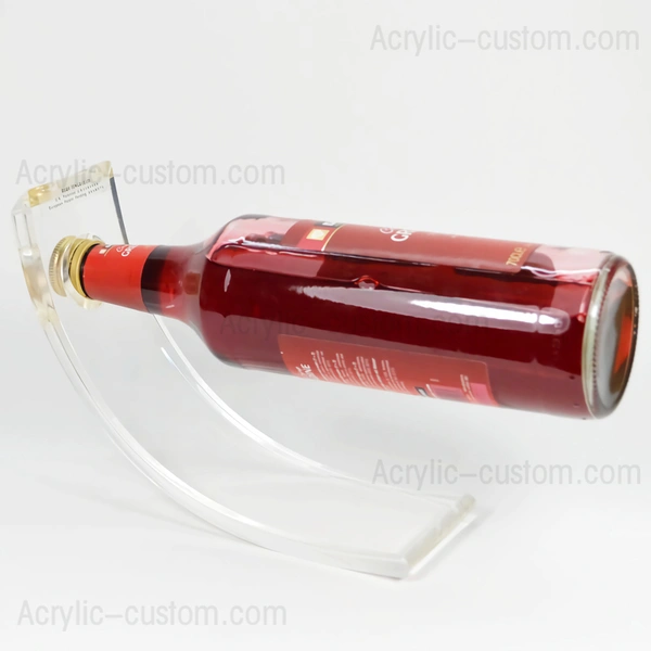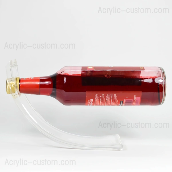 Portabotellas de vino de acrílico transparente, estante/soporte de exhibición flotante para botellas de vino, estante para botellas de vino equilibrado en la encimera, soporte/estante de vino decorativo