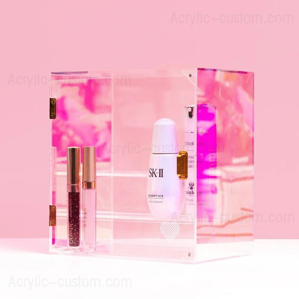 Ce n\'est pas un stand de maquillage simple et ennuyeux - notre organisateur acrylique RIKI est irisé, montrant des couleurs lumineuses visibles sous différents angles. Il dispose également d\'une porte à l\'avant, que vous pouvez fermer si vous préférez ranger vos essentiels de beauté.