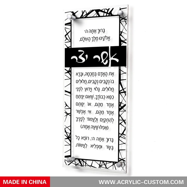 2. Une nouvelle approche des arts muraux classiques en lucite ! Ce magnifique Asher Yatzar donne la classe parfaite, avec une bordure et des mots élégants en miroir 3D. Perfection sans couture.
