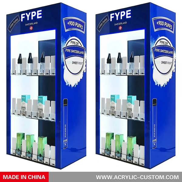 Montrez votre marque d\'e-cigarette et augmentez le désir d\'achat des clients. Coopérez avec les magasins de cigarettes électroniques, utilisez différentes techniques de conception et matériaux pour créer du style et mettez en valeur l\'attrait du produit. Nous nous spécialisons dans la conception, le développement et la fabrication de nombreuses solutions d\'affichage différentes pour les produits de vapotage, les cigarettes électroniques et les liquides de vapotage.