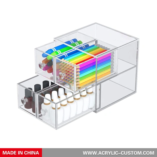 当社の大小のアクリル収納ボックスには、さまざまな色があります。 透明アクリル収納ボックス、カラーアクリルボックス、蓋付き収納ボックス、アクリルオーガナイザーが含まれます。 これらのアクリル収納ボックスの引き出しは、ホーム オフィスをきちんと整頓するのに最適な方法です。