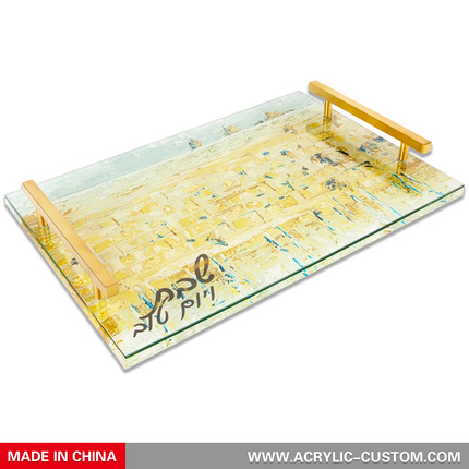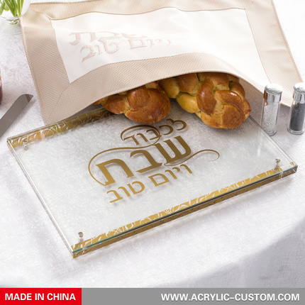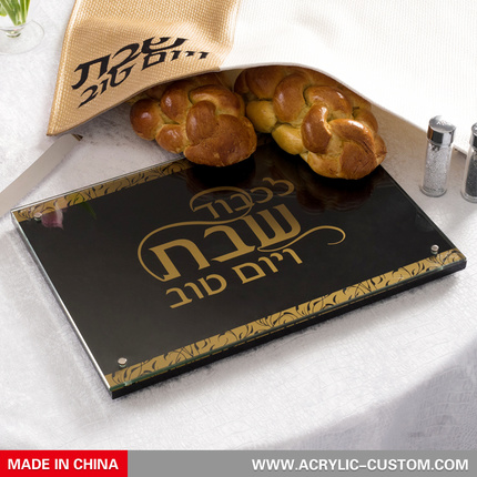 SKU:Black Lucite Gold Challah Board Glass Shabbat Challah Tray/100PCS