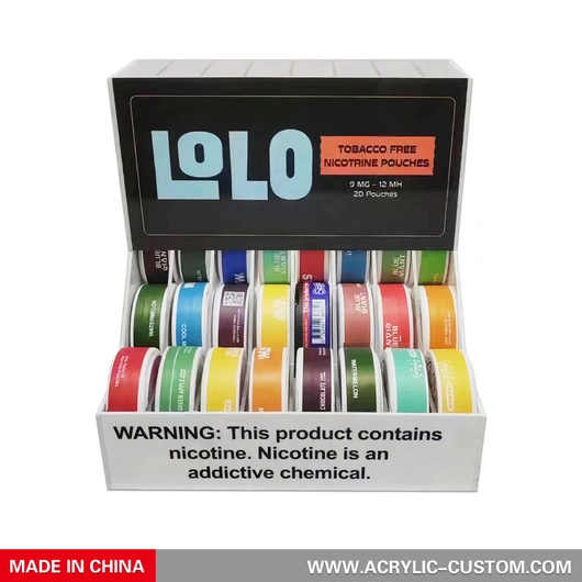 Благодаря нашим расширенным возможностям настройки вы можете добавить свой логотип, брендинг или графику на акриловый дисплей для электронных сигарет. Вы даже можете выбрать цвет и отделку акрила в соответствии с эстетикой вашего бренда.