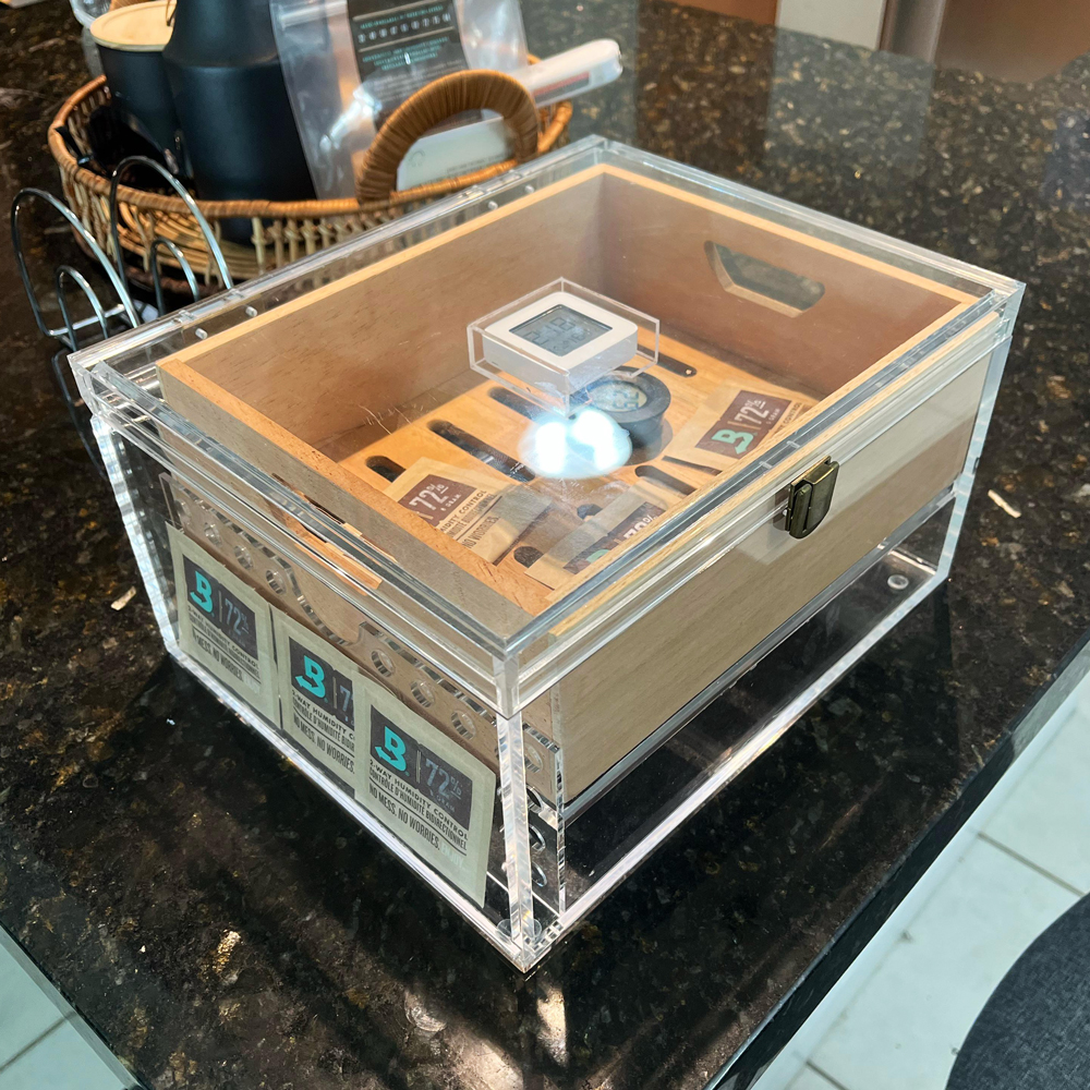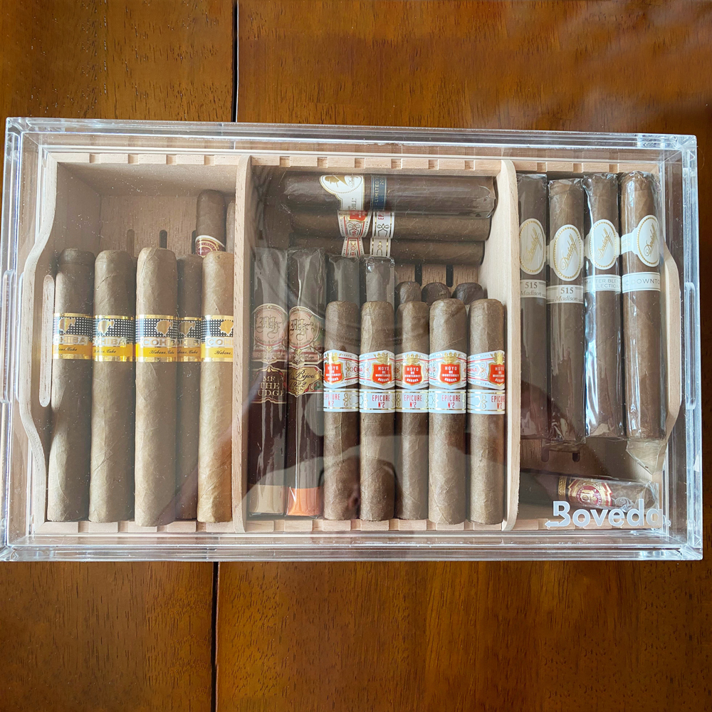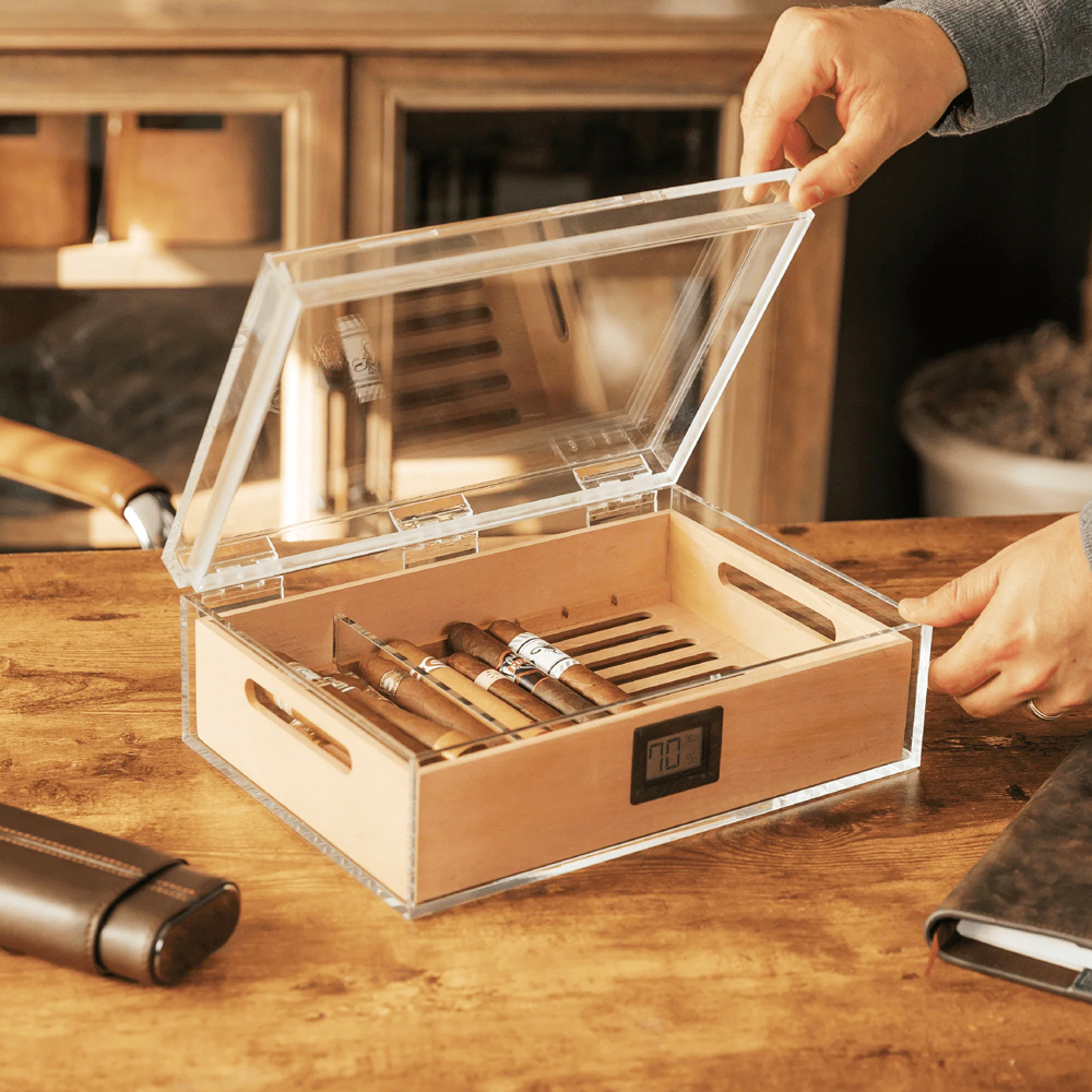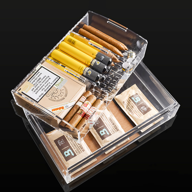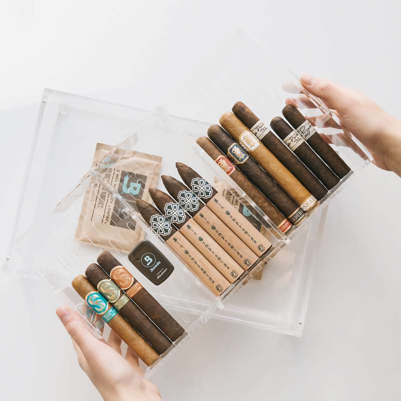 Доступные в различных размерах и дизайнах, от небольших настольных хьюмидоров для сигар до больших моделей в виде шкафа, акриловые хьюмидоры ручной работы предлагают универсальное решение для хранения сигар для любого любителя сигар.
