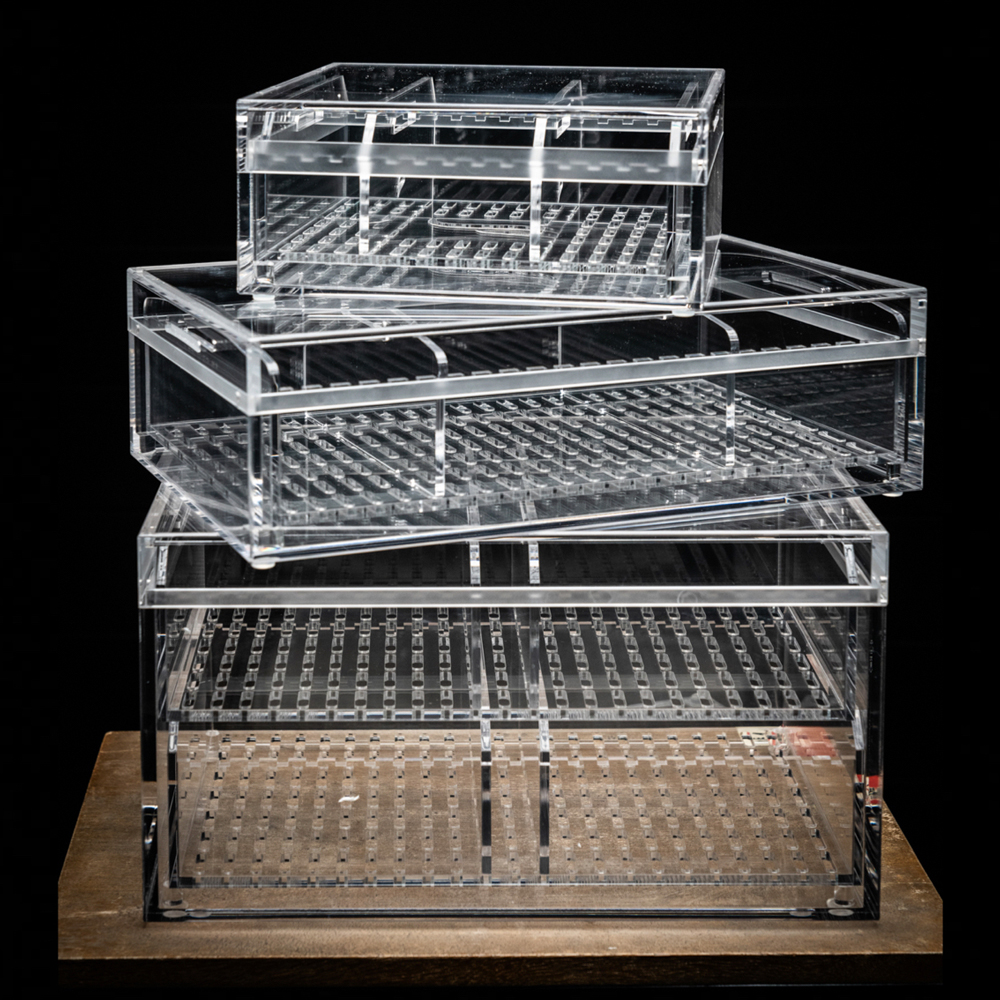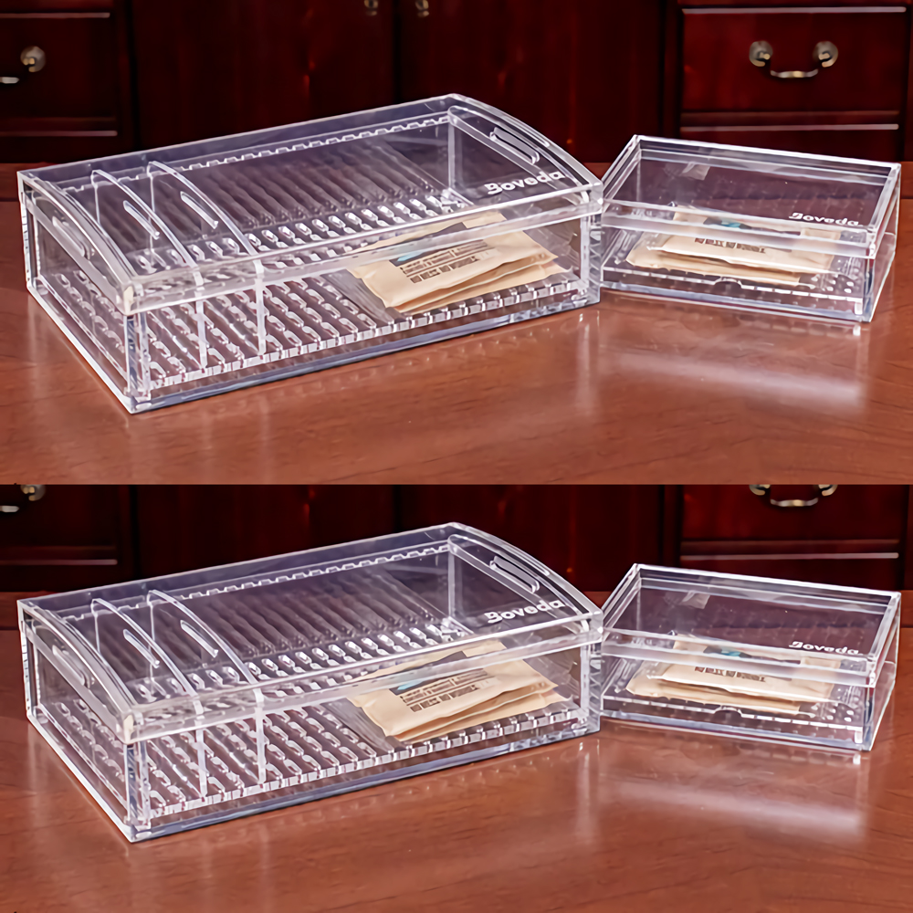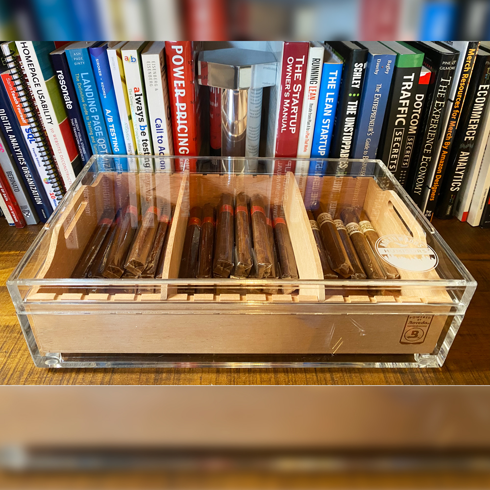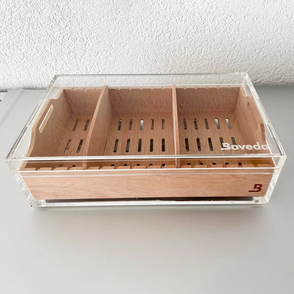 Доступные в различных размерах и дизайнах, от небольших настольных хьюмидоров для сигар до больших моделей в виде шкафа, акриловые хьюмидоры ручной работы предлагают универсальное решение для хранения сигар для любого любителя сигар.