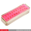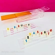 1. Beautiful set of rummy game tiles come in a hand bent acrylic box with sliding transparent colored lid.
